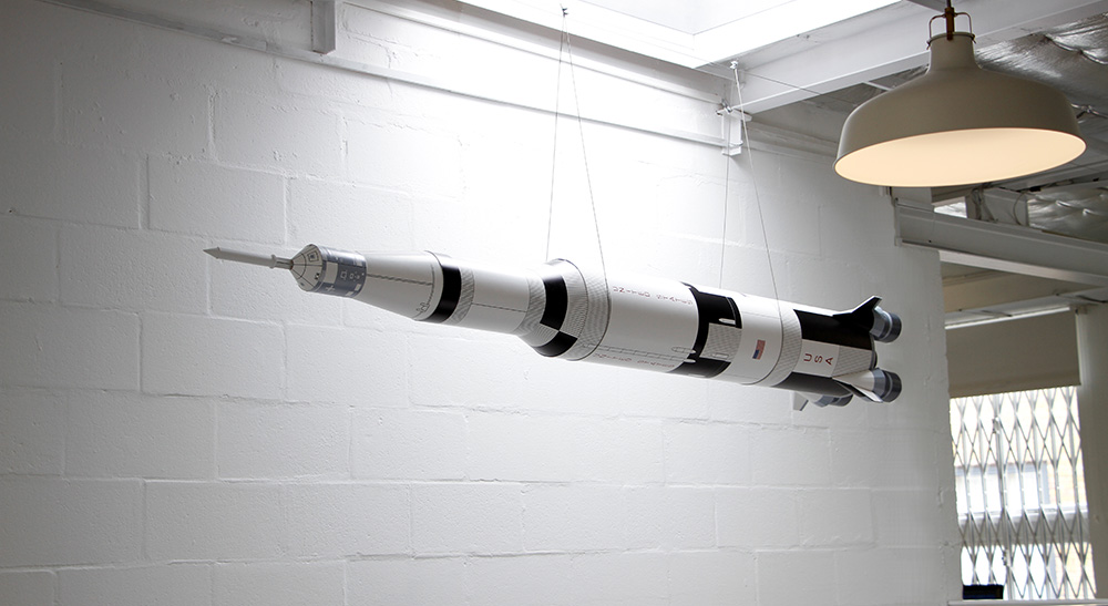 To celebrate the 50th Anniversary of the first lunar landing I decided to build the ultimate cardboard space rocket. An 8.5ft tall scale-model of the Saturn V rocket which took the crew of the Apollo 11 mission to the moon. It now lives in the entrance of our studio at