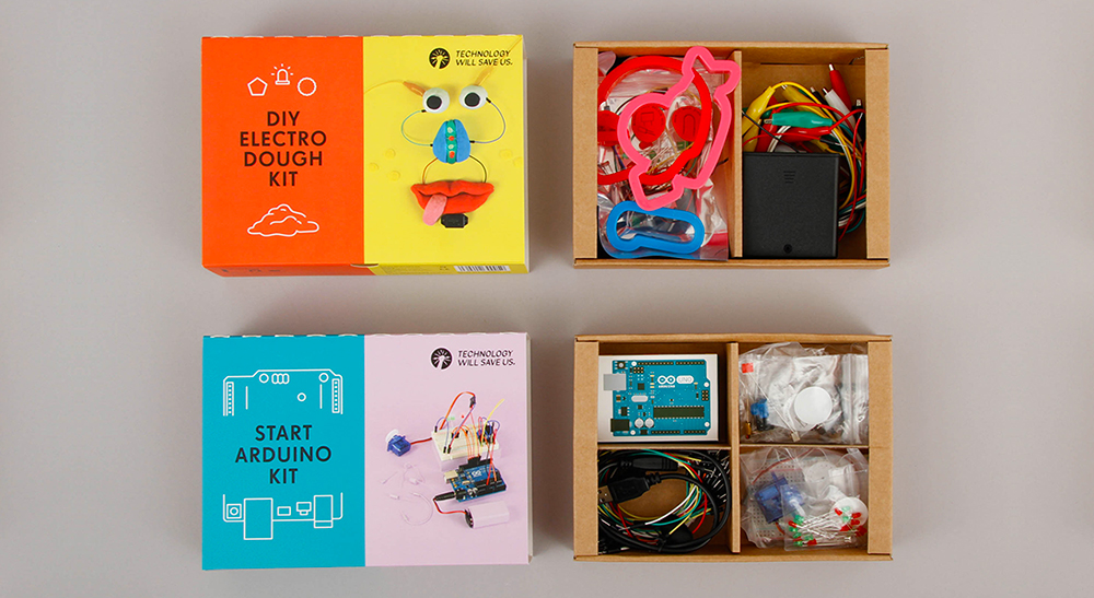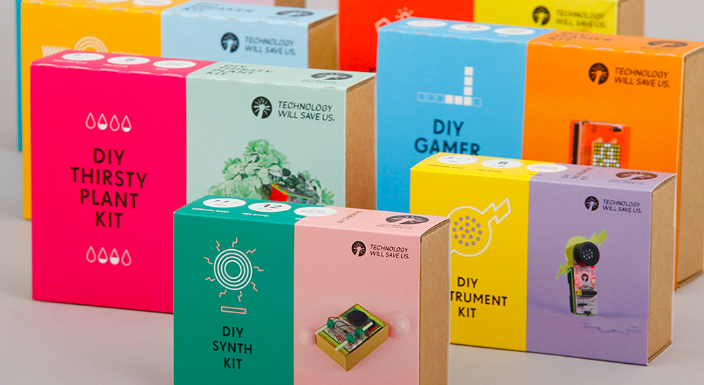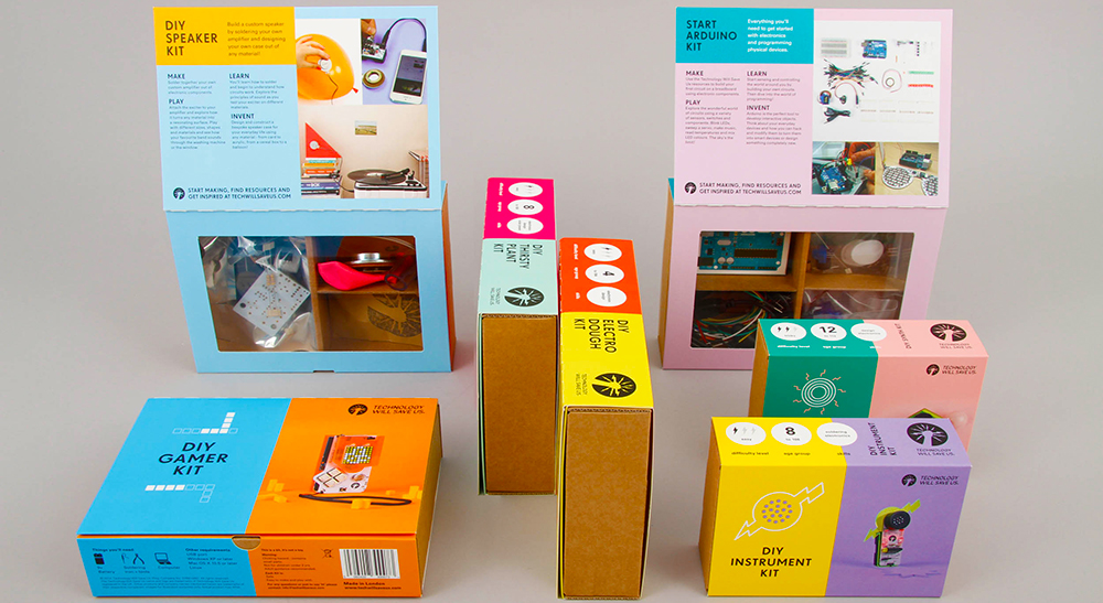 Technology Will Save Us' DIY gadget kits provide opportunities to learn and create using technology and design. The packaging helps to reinforce the two sides of the brand offering; fun and education. We wanted to show people all the cool stuff you get in each kit and what it could become with a bit of imagination. The ‘maker tray’ was developed as a modular system to house a wide range of different inventories. It also provides a secondary function as a way to store and organise all of the components whilst the kits are being built. It was a pleasure to work with Oliver Helfrich who created the wondeful artwork. For further information visit: