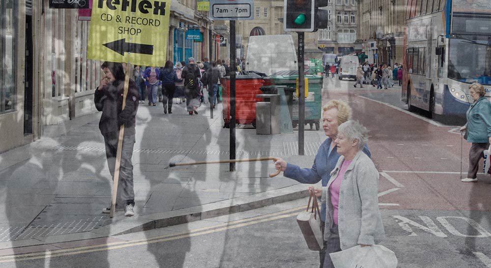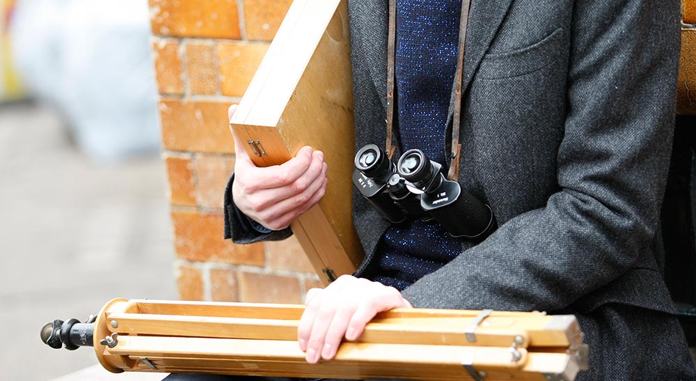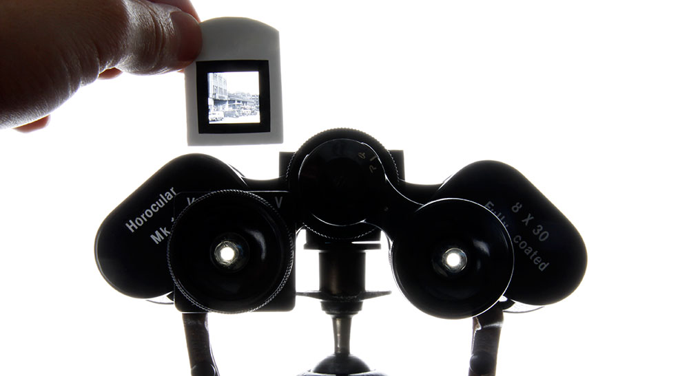The optical device that lets you look back in time as well as forwards. The left eye piece is a slide viewer, the right a standard monocular. They allow you to travel around and overlay images from the past to see what has changed.Horoculars were developed in collaboration with Professor Alastair Bonnett and inspired by his work on, 'The Geography of Nostalgia' at Newcastle University.